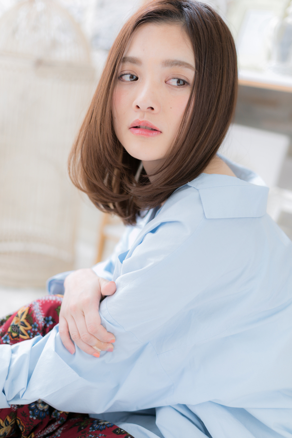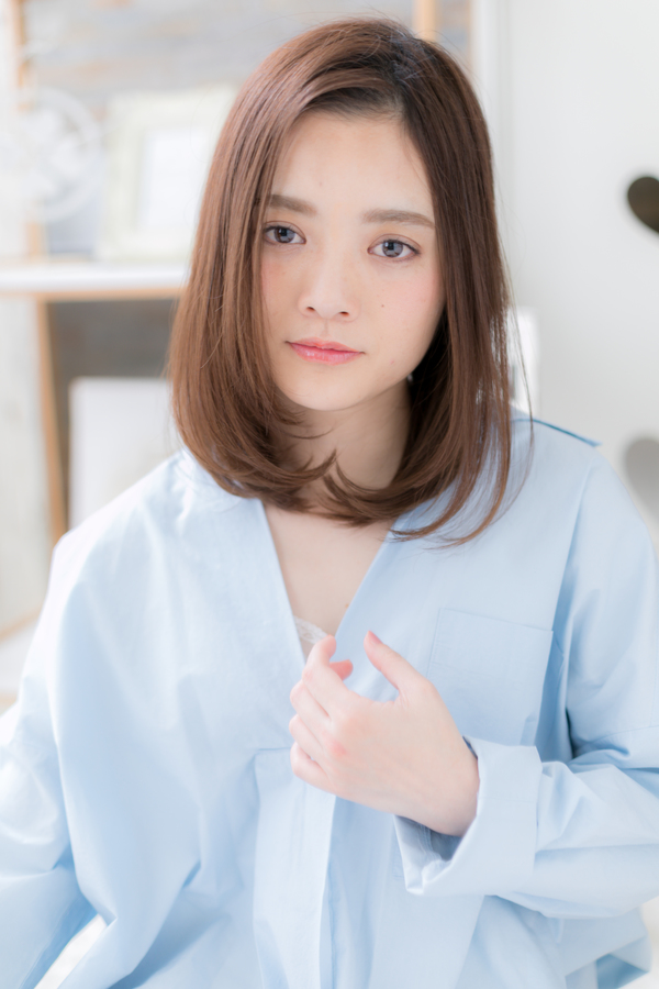 7:3で分けた大人っぽヘアスタイル。結べる長さを残しヘアアレンジし放題♪ミディアムヘアを際立たせるグラデーションカラーやベージュの暗めの髪の色で大人女子のファッション度UP。前下がりのストレートや斜めパングのストレートもおすすめ!30代・40代にも◎(メイク担当:COVERHAIRGROUP成田)