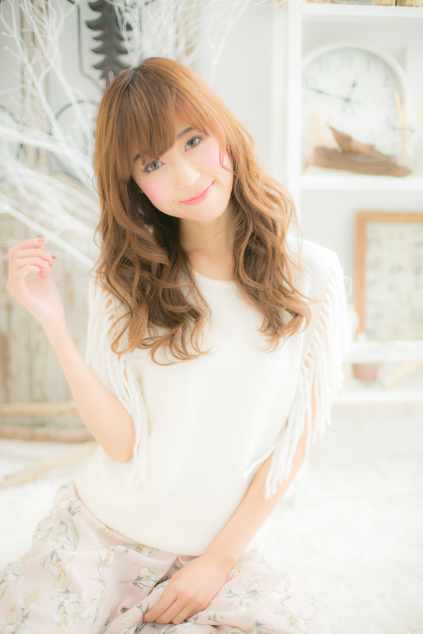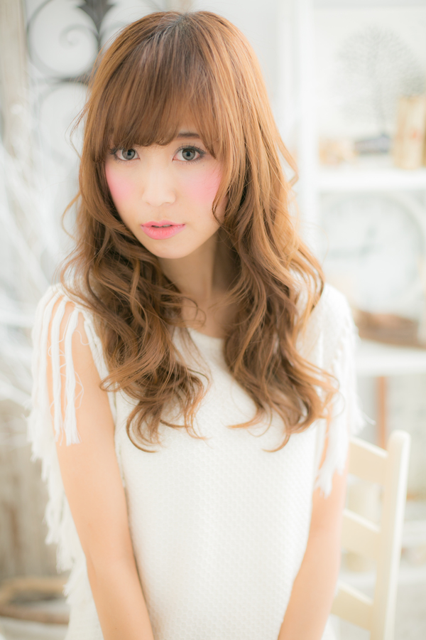 まるでお人形さんみたい☆厚めバングと外国人のようなボリューミーカールに目を奪われちゃうドーリーロング。女の子なら一度はやってみたい憧れスタイルですよね♪バングの長さを変えれば個性も光ります☆