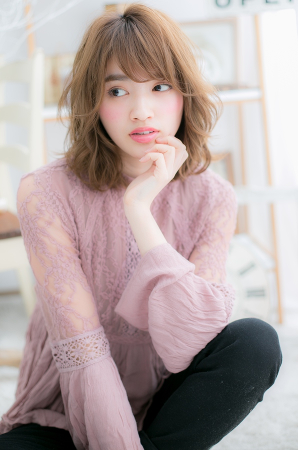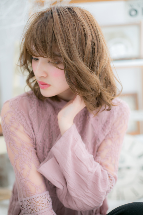 風になびくようなMIXカールでふんわり仕上げたラフミディ。リラクシーな雰囲気で抜け感を出して大人っぽく。斜めバングでフェミニンにしたり、ノーバングでスマートな印象にしたり、無造作なかきあげもカッコイイ!