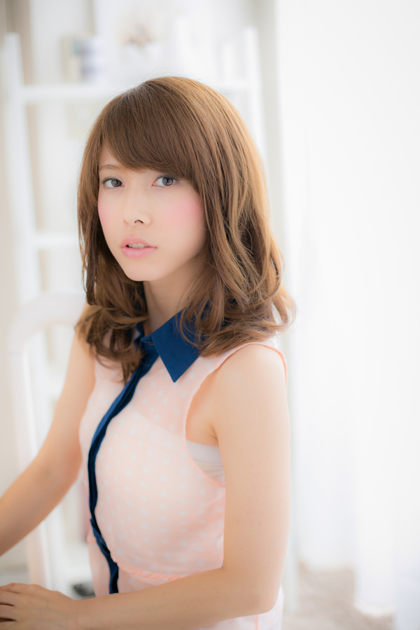 根元は乾かし毛先は半乾きでムースを揉みこみます。前髪は軽くブローを。透明感のあるカラーがどんな服装にもあう,ハッピーウェーブスタイル。他、美髪にはトリートメント,個性的なドーリーヘアー,くせ毛風なフェミニンロング、重めスタイルもオススメ☆