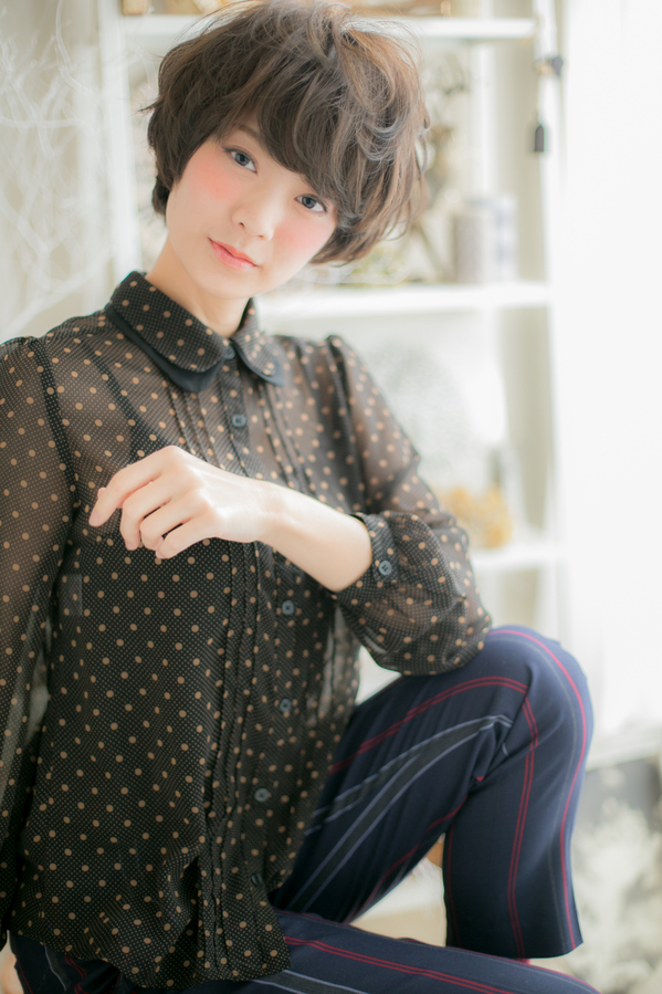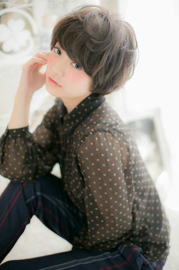ルーズなカールで空気感をだして軽いボリューム感が大人かわいいエアリーショート。アッシュ系のカラーがオシャレ感を引き立たせます☆