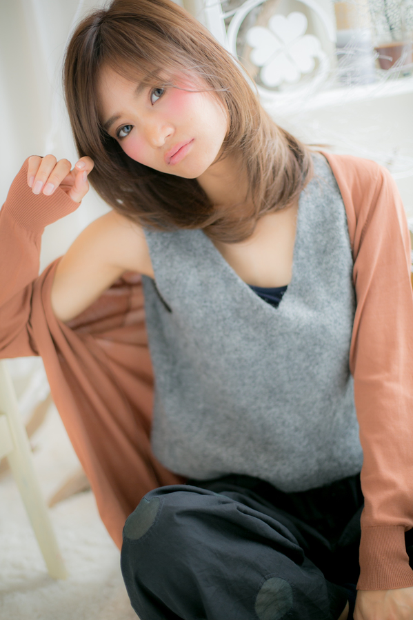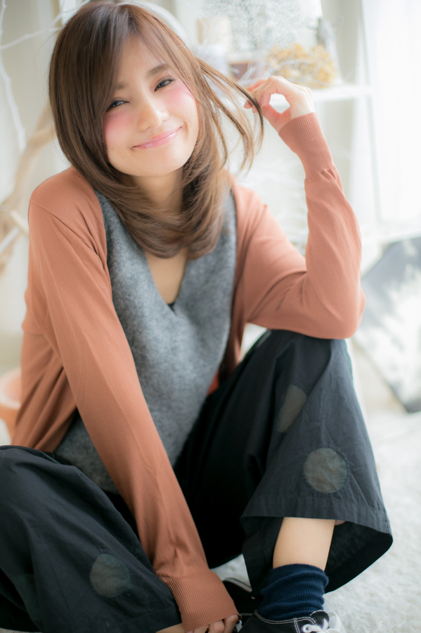 モテ度高いベージュ系カラーとさらさらセミディスタイルは失敗なし!ひし形の黄金バランスにプラス、フェイスラインもカバーできちゃう嬉しいポイントも。