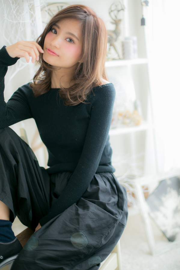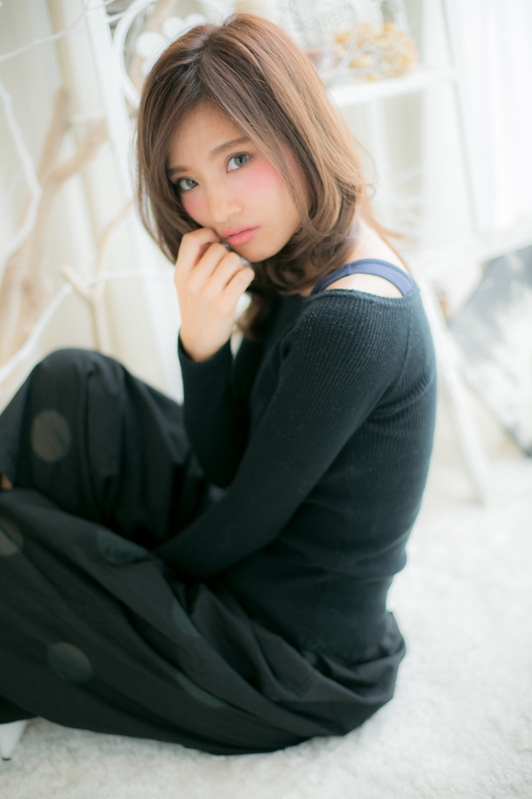 頬のラインを包み込み輪郭をカバーしてくれるサイドのワンカールレイヤー、ベージュカラー…とモテ要素満載!間違いナシの美人セミディ。女性らしさを引き立ててくれます。