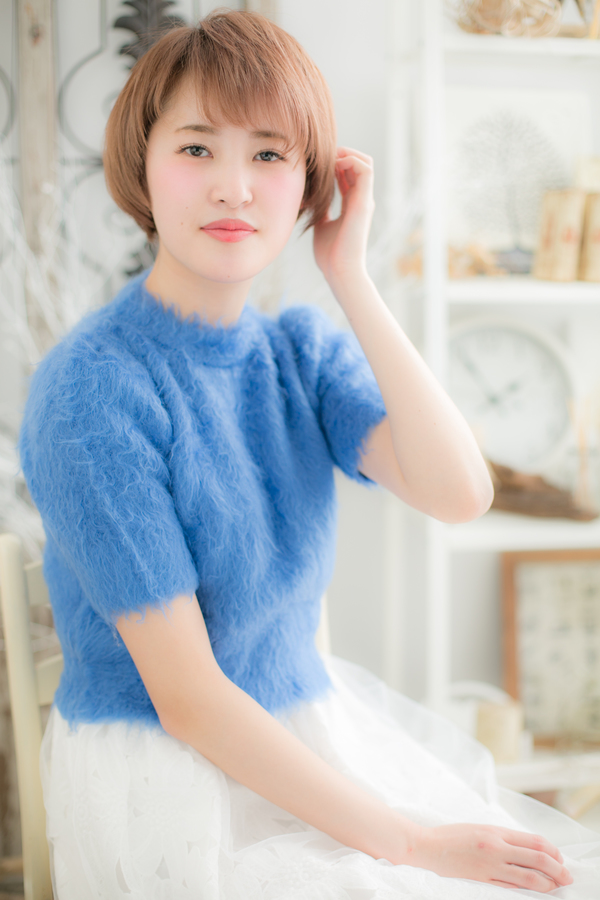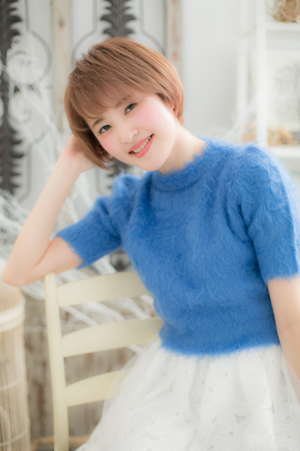 ハイトーンカラーと毛先を軽く毛量調節したカットでカジュアルに仕上げたショートスタイル。レイヤーが入ってるのでトップもふんわりボリュームを出しやすい♪