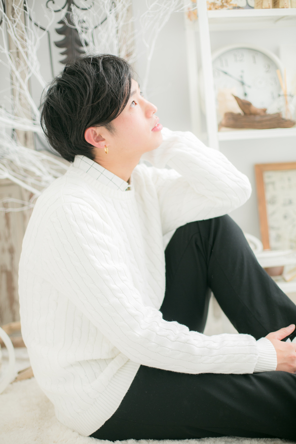 セミウェットな状態でスタイリング剤をつけてセット。分けやすいところで片側を耳かけしてスタイリッシュな仕上がりにしてもGOOD。