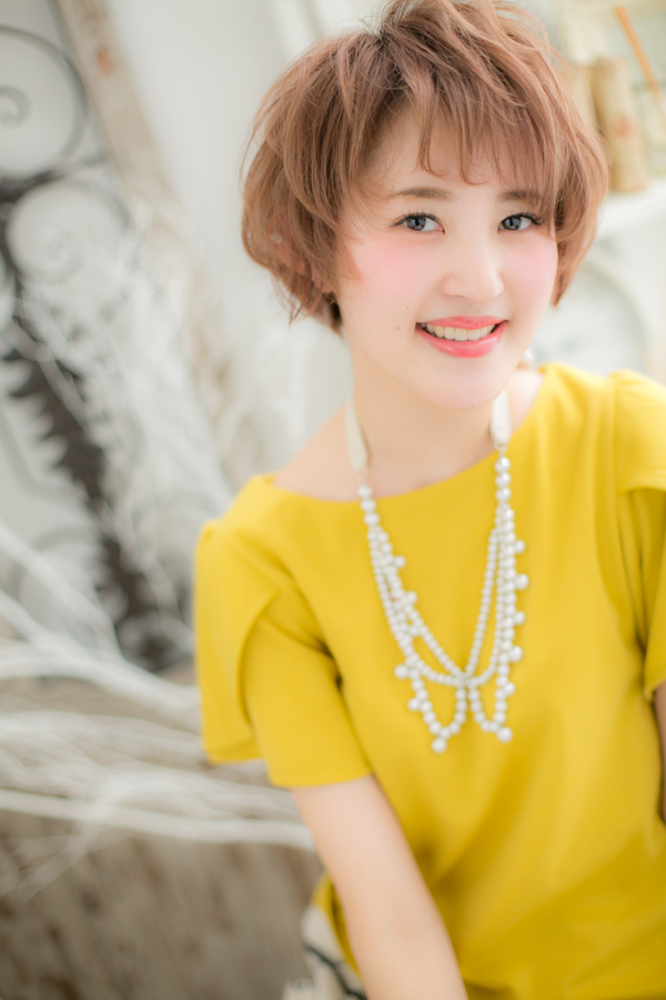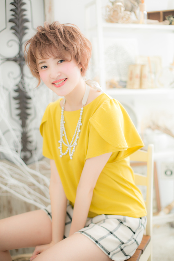 マッシュベースのトップにレイヤーを入れ、柔らかさと立体感を出しています。ふんわりとしたカールとピンク系のカラーで、フェミニンな香り漂うワンランク上のカジュアルショートスタイルに。