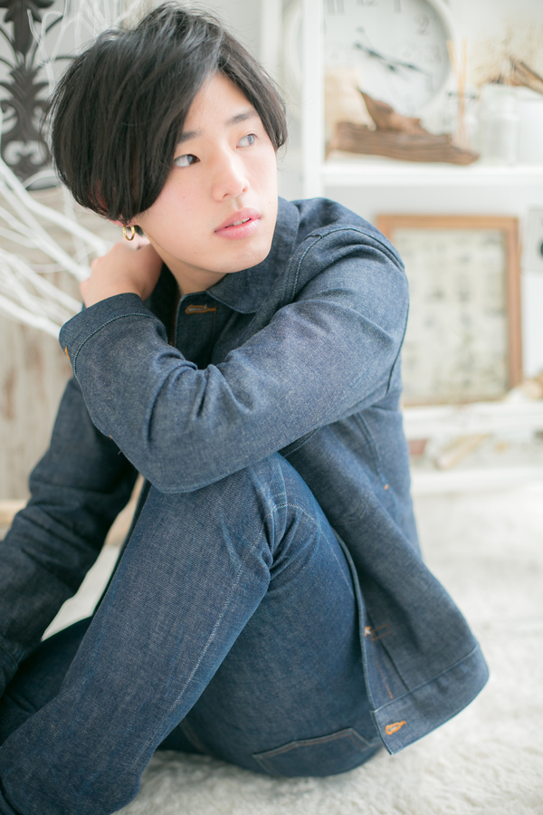 ラフで無造作に仕上げたミディアムスタイル。サイドパートでしだれ落ちるサイドの髪がセクシーな男の色気を演出。