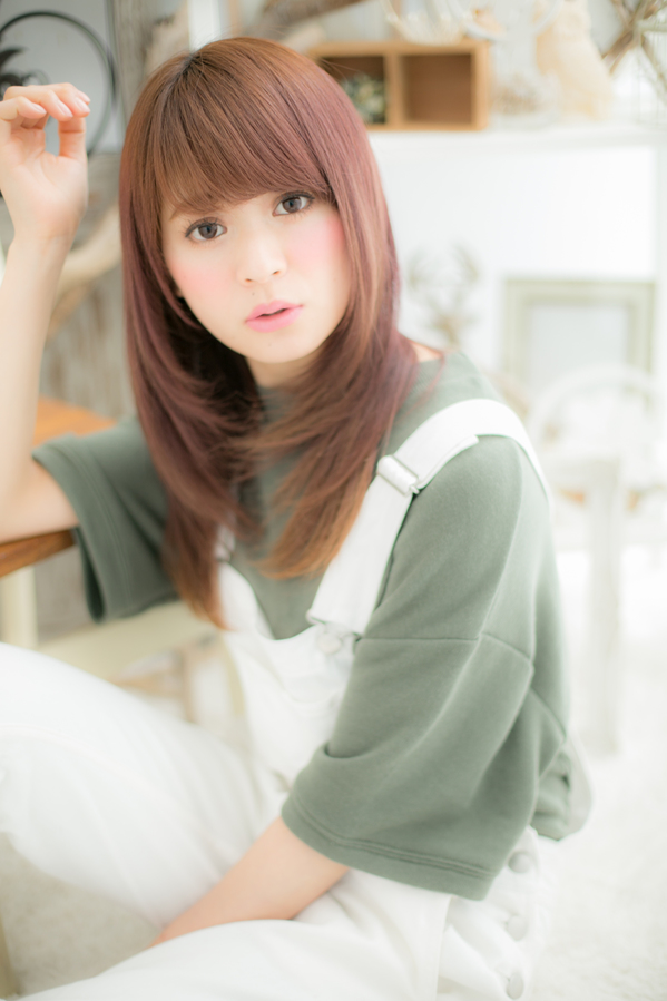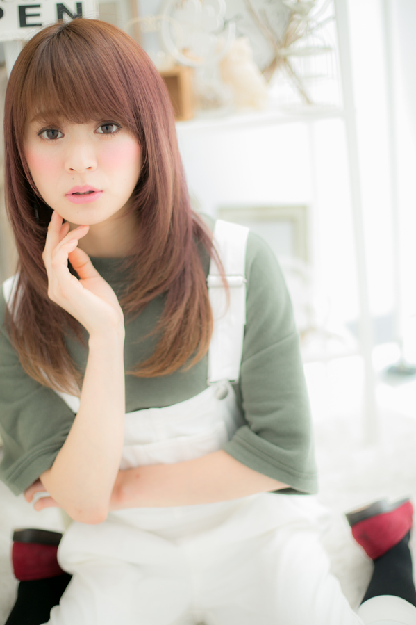 織り重なるレイヤーで,ストレートでも華やぐ立体感♪厚めのバングで少女のような可憐さを残せば,男女から好感度の高い愛されスタイルに。