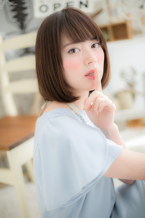 少し暗めのカラーと眉が隠れる前髪で、エキゾチックな印象にも見えるストレートボブスタイル。ストレートをかけることでよりツヤ感もUPし、ブローをする手間も省けます♪