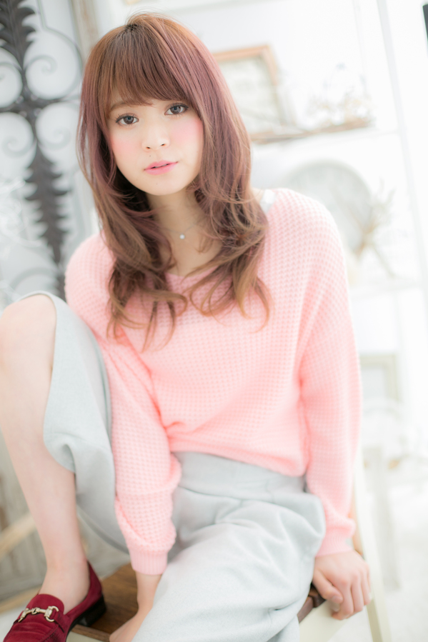 顎下ラインから大きいカールが揺れるようなレイヤーが入ってるので、毛先メインのパーマも華やかにも見えます☆ピンクベージュ系のカラーで愛らしさもプラスのモテスタイルです。
