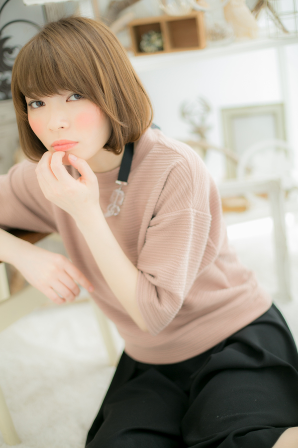 明るい透明感のあるカラーと、柔らかふんわりワンカールのついたストレートで、ブローをした様なスタイルを簡単に♪伸びてきてもしばらくはスタイルを再現できます。