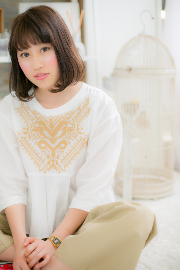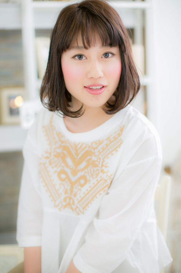人気のあご下ボブスタイル。ハイライトを入れたカラーで立体感をプラス。前髪も目と眉の間で、しっかり目力UPに!永遠の王道ボブスタイルです。