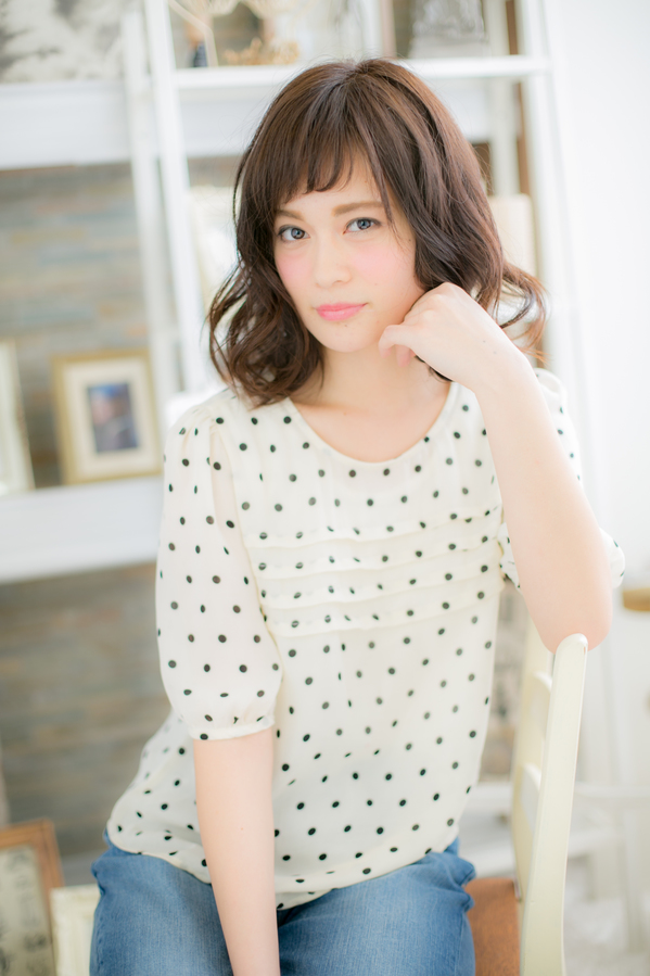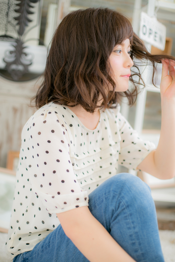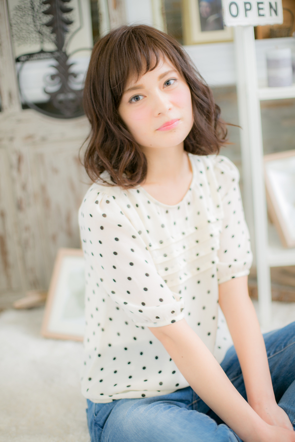 ふわふわ感が可愛いボブヘア。伸ばしかけの方や普通のボブに飽きた方にオススメです。短めバングで差をつけて、人とは少し違う印象に♪