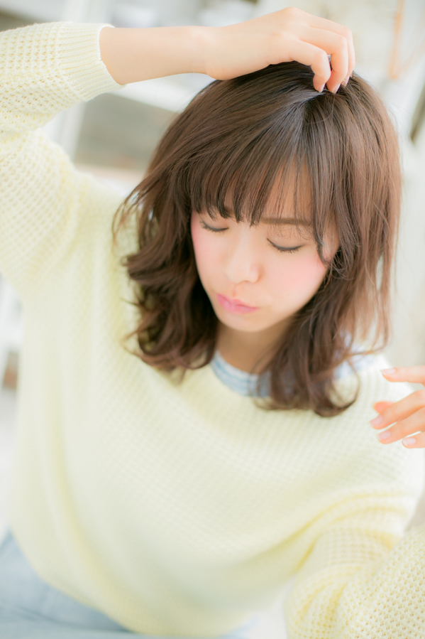 計算されたカットと毛先にMIXパーマで華やかさをプラス。前髪も目の上ギリギリラインで愛らしい雰囲気にも☆