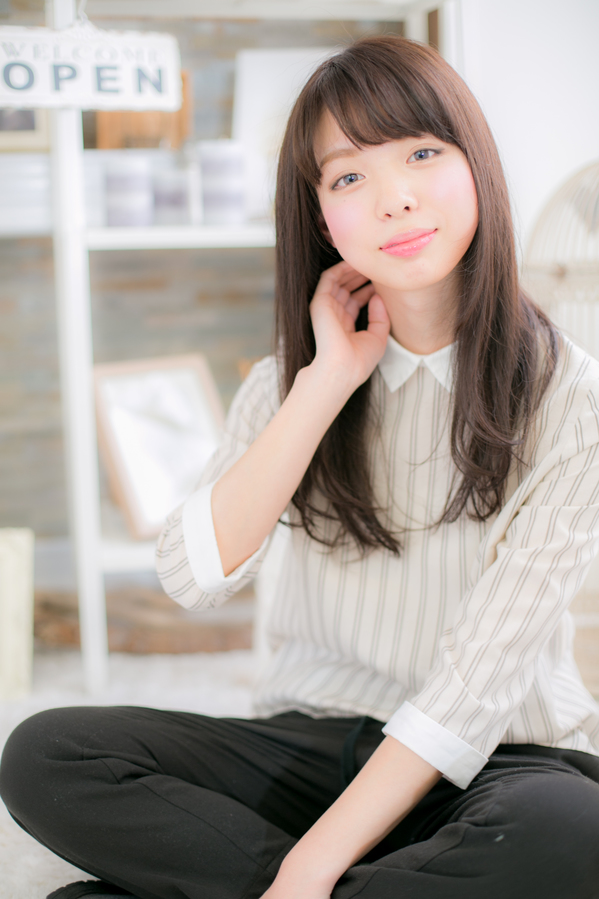 クセを生かして、毛先の動きをプラスに。サイドのレイヤーが動きのあるスタイルに見せます。目を強調させる目の上ギリギリバングがあなたの印象度をUPさせます。