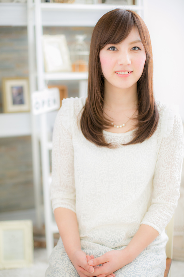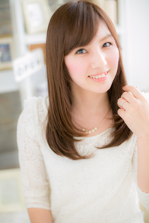 胸上ラインのローレイヤースタイル。顔周りにもしっかりレイヤーを入れているので、乾かすだけで自然にまとまるストレートスタイルです。明るめカラーで軽やかに。