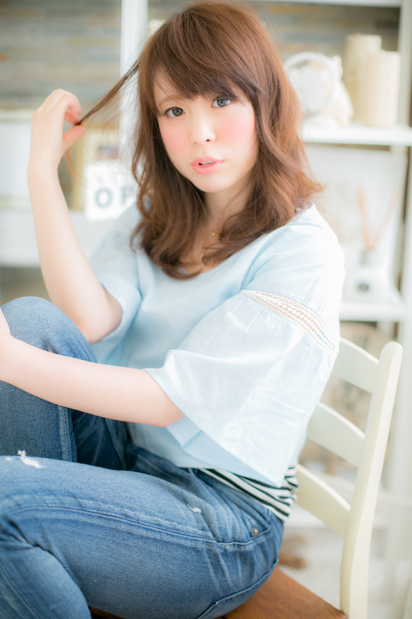 毛先のワンカールを活かして、中間にコテを使ってうねりを出すように巻くと雰囲気が変わります。