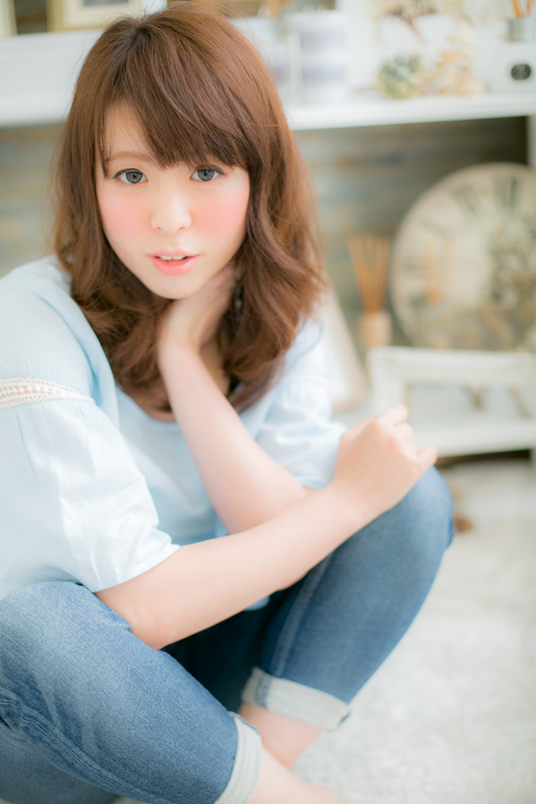 毛先にワンカールをかけて、顔周りはリバースに巻いています。肩のラインのゆるふわカールとくびれ感が大人かわいいモテスタイル。