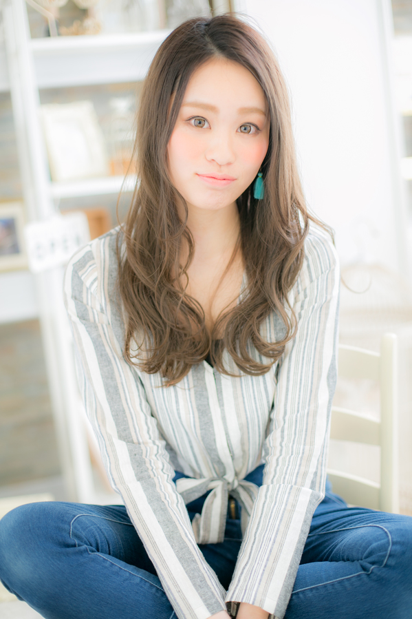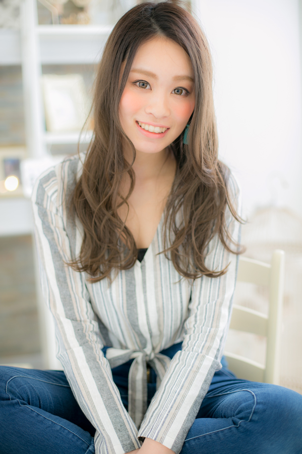 どんなジャンルでも似合わせできる大人かわいいスタイル。口元より下にウェーブを出し,より小顔効果抜群。バングを立ち上げてもナチュラルに流しても◎。