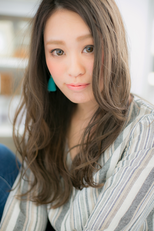 毛先をねじってドライするだけでウェーブができる、シンプルなスタイル。ドライ前後で必ずオイルを使用すると、綺麗なツヤ感が出てGOOD!