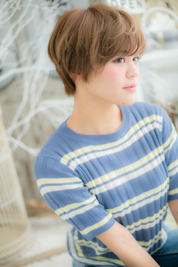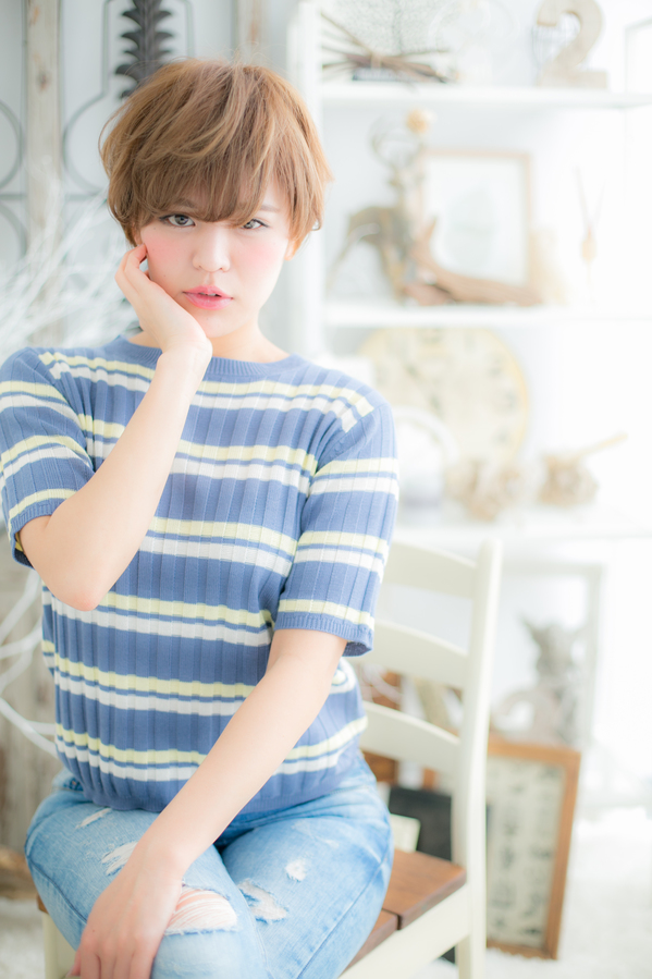 トップの長さがあるので、程よく女の子っぽさも残したボーイッシュなショートスタイルです。透明感あるハイトーンカラーが外国人ぽいような雰囲気も演出します☆