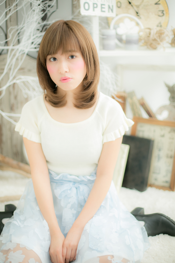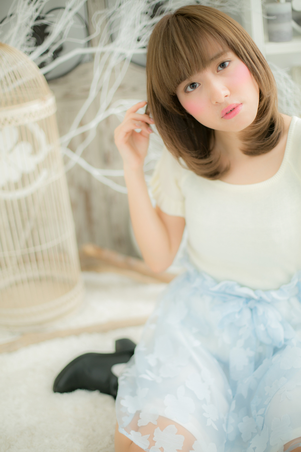 ワンカールストレートで、さらさら内巻きストレートをキープ☆毛先の丸みがストレートだけではだせないフェミニンな印象に見せます。明るいカラーで重みも感じさせません。
