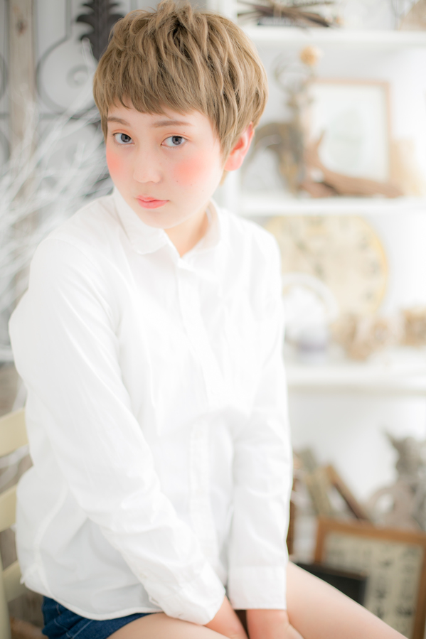 ハイトーンで周囲と差を付けた個性的ヘア。外国人の子どもみたいなくしゅっとしたラフな雰囲気がカワイイ短めのショートスタイルです♪