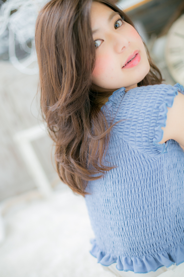 アウトバストリートメントでケアをし、毛先のカールを崩さず出します。ナチュラルに分ければ出来上がり☆