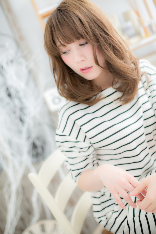 大人っぽさと少女っぽさが絶妙バランスで同居するふわミディは、男女人気のモテスタイルです。明るいカラーで柔らかさと軽さもプラス♪