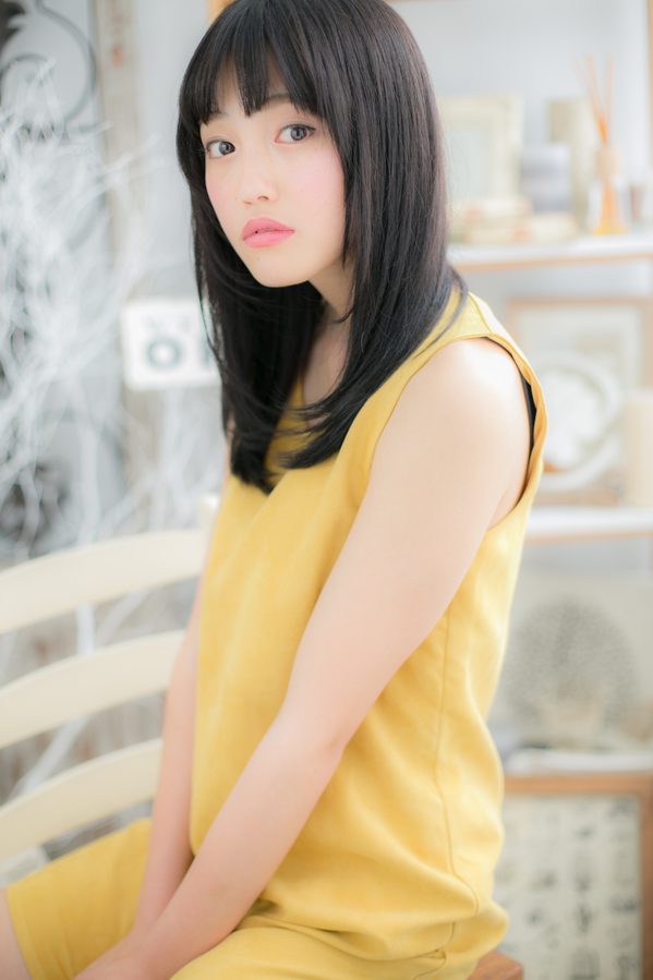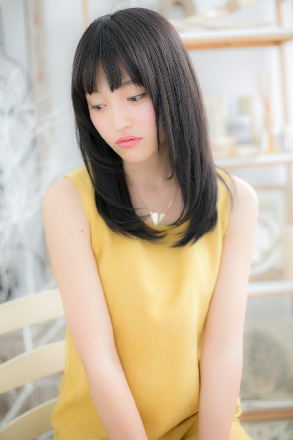 パッキリとしたストレートではないので、柔らかくて自然な質感に仕上がります。黒髪でピュアな印象に♪