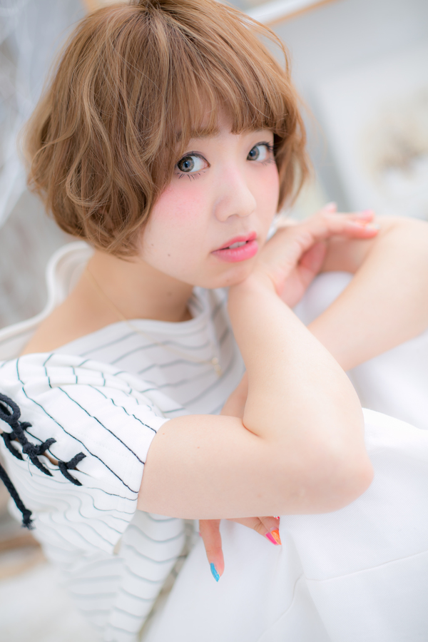 外国の子どものようなくしゃっとした柔らかい印象のウェーブボブに明るめのカラーをオン。ハイライトで動きを出すのがオススメです☆毎日の気分もハッピーになれそう♪