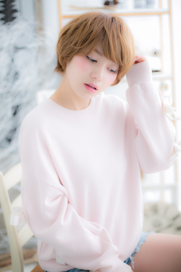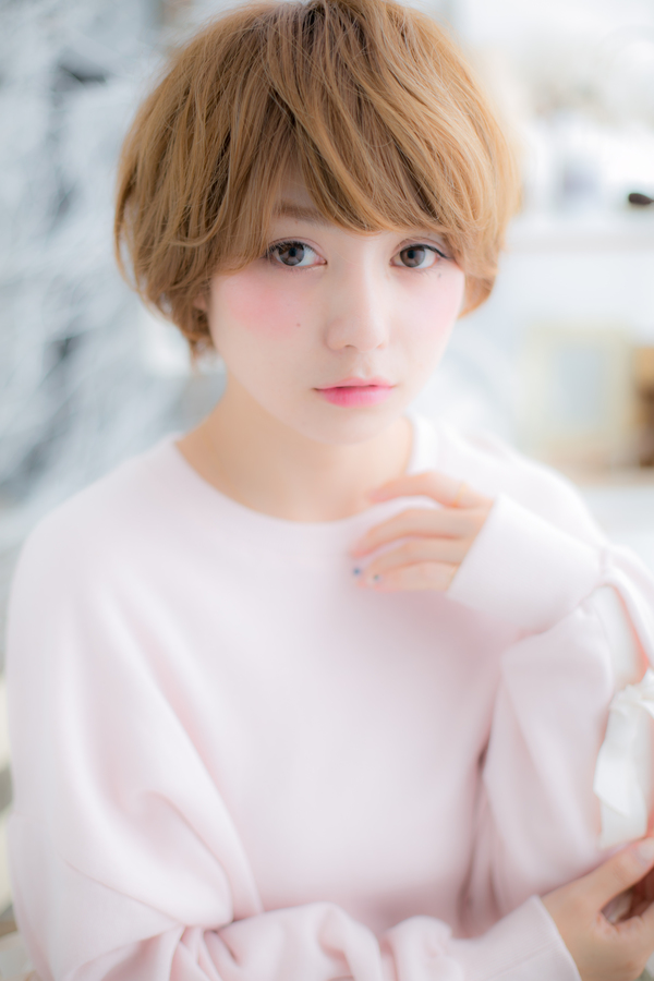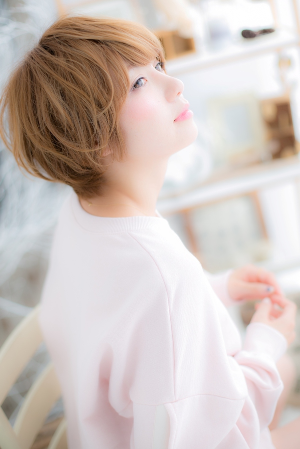 トップに長さを残して女の子らしく柔らかなカールがポイントのショートヘア。ハイトーンカラーで外国の子どもみたいなふわくしゅ感とピュアな透明感を演出。