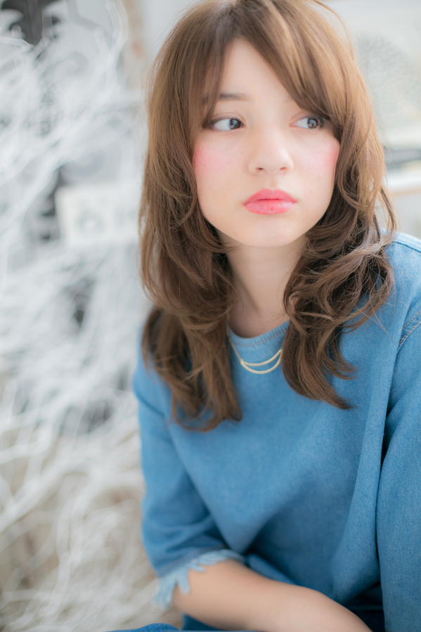 フリルのように織り重なった毛先のカールが綺麗にまとまったエアリーウェーブロング。ツヤ色カラーで表情もパッと明るく見せます☆