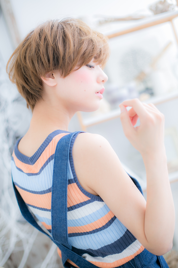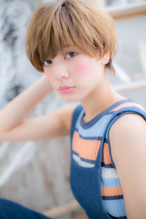 外国人の子供の様なルーズで無造作なおしゃれ可愛いふわぼさショート。明るいアッシュ系カラーでぐんとカジュアルに☆
