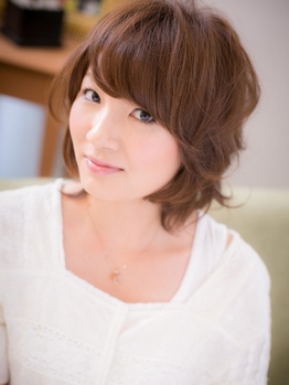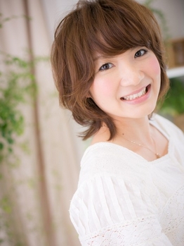 ふわふわパーマをかけて、ショートなのに女の子らしく仕上げてます!カラーはダークトーンからハイトーンまで、どんなカラーにも合うスタイルなので、色々な方に楽しんで頂けます。スタイリングも簡単なので、ショート初挑戦の方にもオススメです!