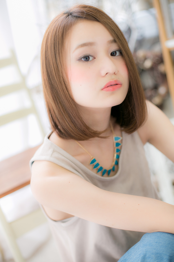 質感UPのストレートでさらつやストレートに♪柔らかい明るめカラーで肌色もぐんとよく見えます。縮毛矯正なら1日セットも乱れずにスタイルキープも嬉しい☆