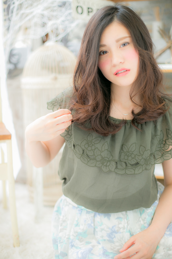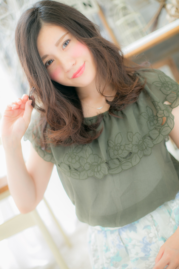 ふわっとした仕上がりでもカジュアルに見えないようベースが大切です。ドライヤーの前にしっかりと保湿トリートメントをつけてあげ、ツヤ感を出してください♪しっとりスタイルでワンランク上の大人女子に。