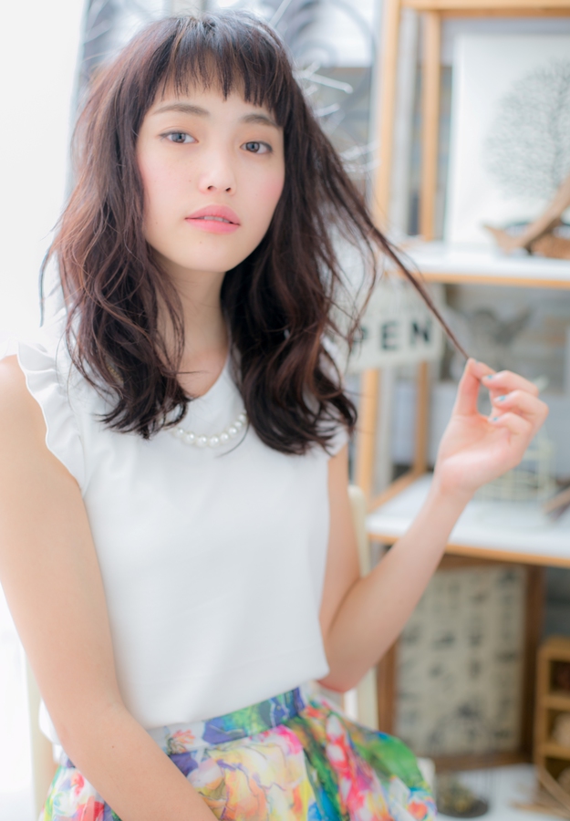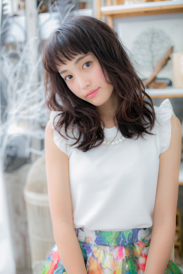 ダークトーンカラーでエキゾチックな印象のセミディスタイルです。根元から大きく出した緩やかウェーブでエアリー感も☆