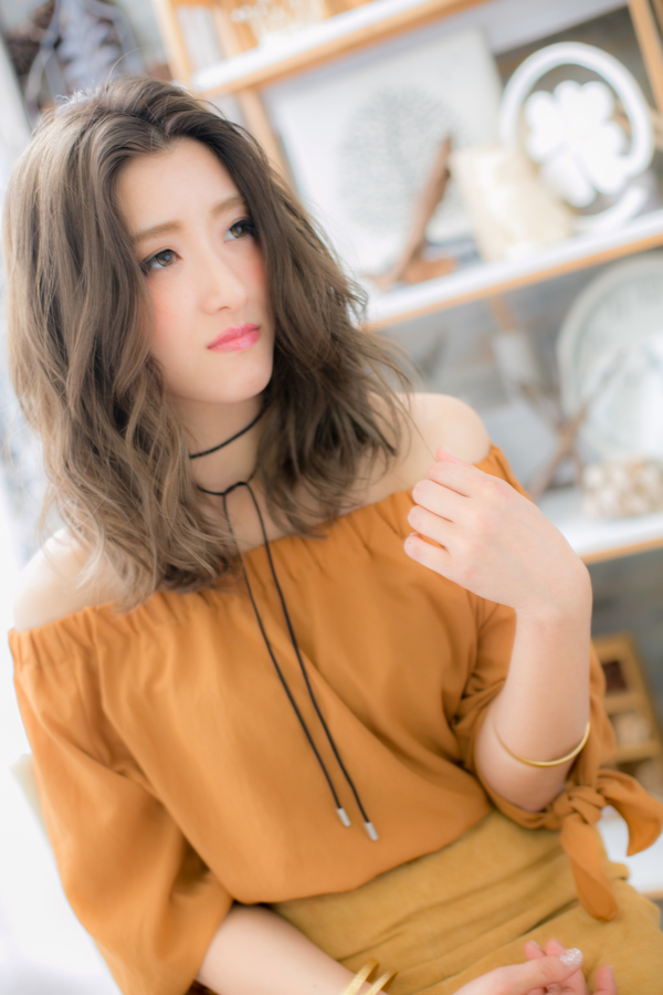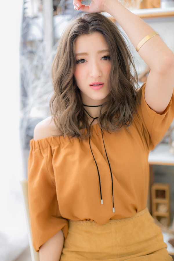 動きやボリュームを出したい方にオススメのメニュー。透明感ある明るいアッシュ系カラーでエアリー感も。