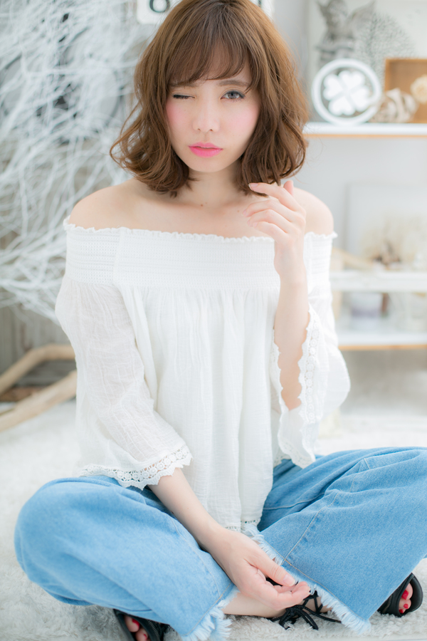 中間から毛先にかけて軽くウェットしてムースやスプレーでふんわりセット。乾燥するとウェーブもキレイに出にくいので、ドライ前のトリートメントケアもしっかりと♪
