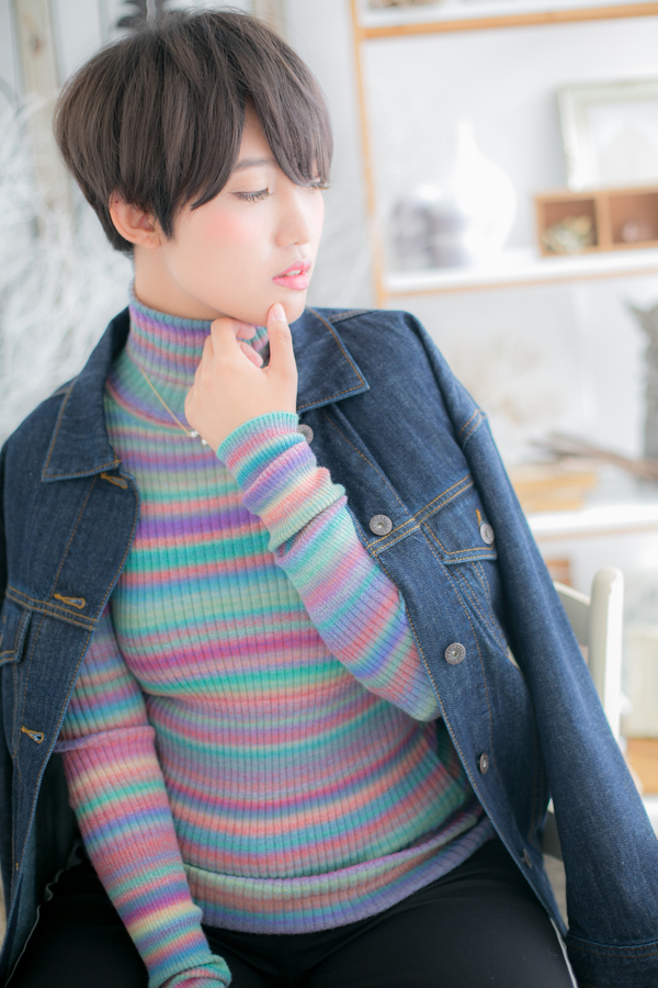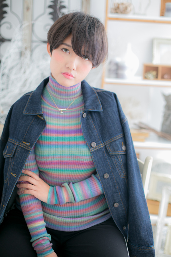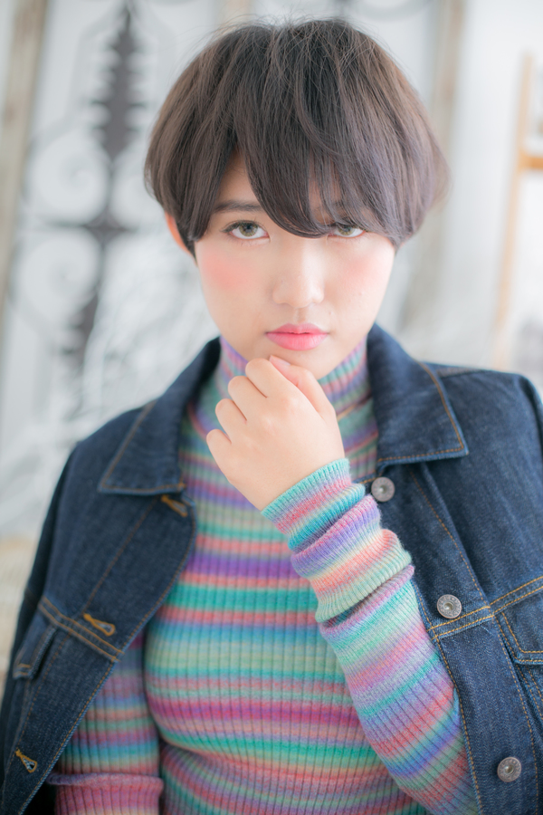 キリッとしたボーイッシュショートで凛とした印象に。目にかかるラフなバングと、なだらかな曲線を描く丸みシルエットでフェミニンな雰囲気も忘れません。直毛の方はパーマをかけると再現しやすく☆
