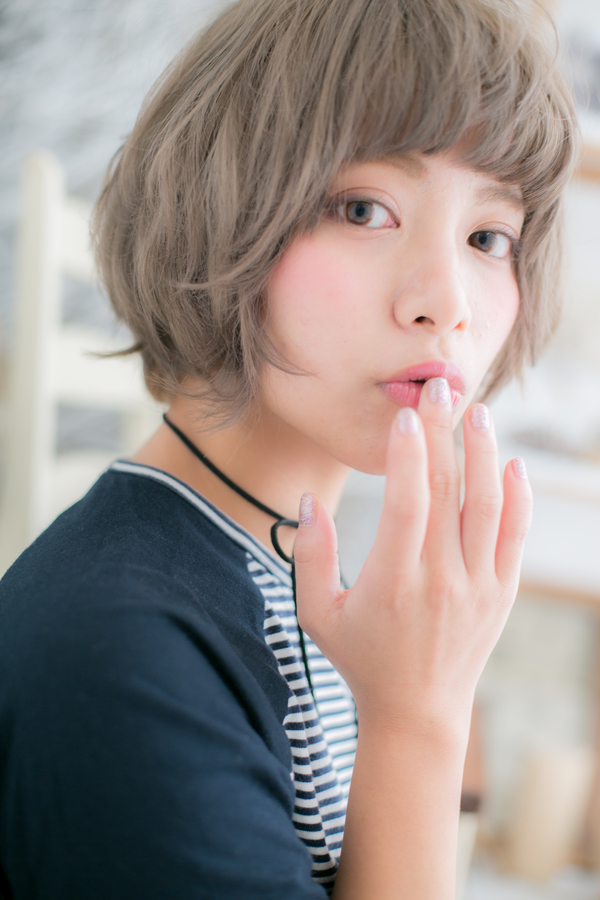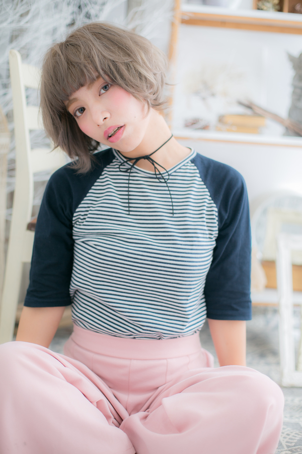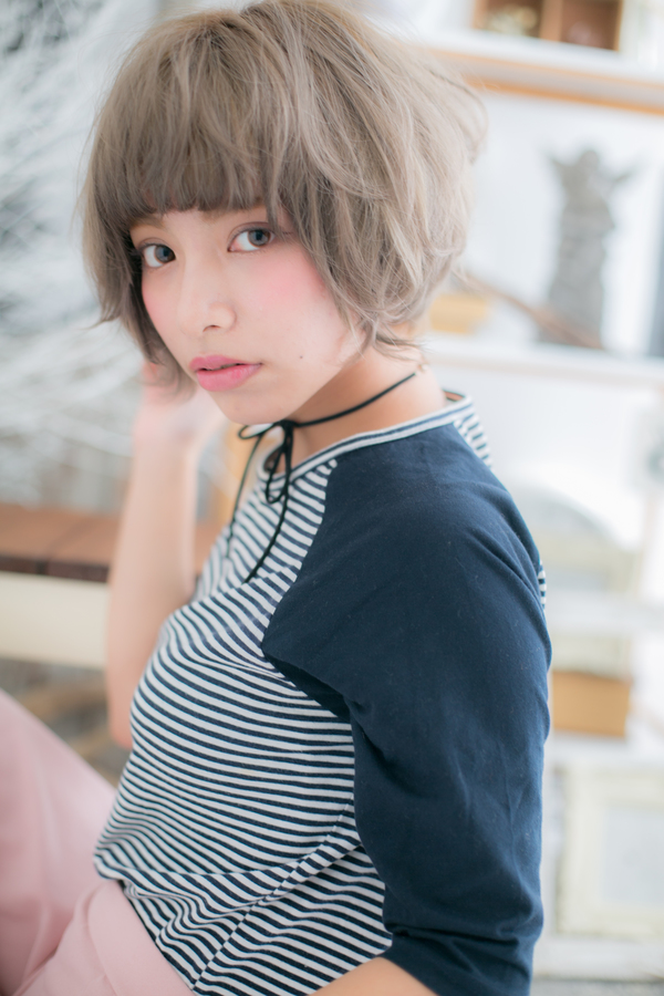 個性の映える攻めカラーがポイントのオシャレボブ。眉がチラ見えするショートバングと柔らかウェーブのかかったガーリーなボブスタイルに、思いっきり明るいアッシュカラーをオン。クールなショートスタイルにヘアチェンジ☆