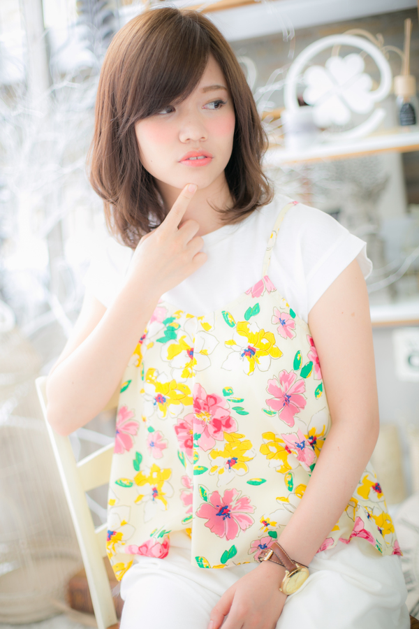 ふんわり♪くしゅくしゅ♪女性の可愛いフェミニン感をだしたスタイルです。柔らかなくせ毛風のアンニュイカールがセットもしやすくてGOOD。
