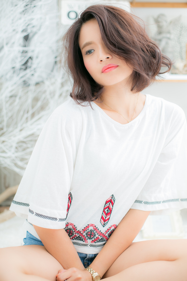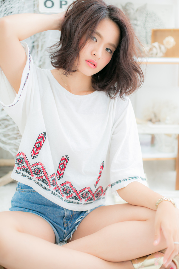 フェミニンな中にやんちゃなムードもトッピングされた脱力×無造作ウェーブミディ。ふわぼさでルーズなボリューム感が抜け感のあるカッコイイカジュアルスタイルに。