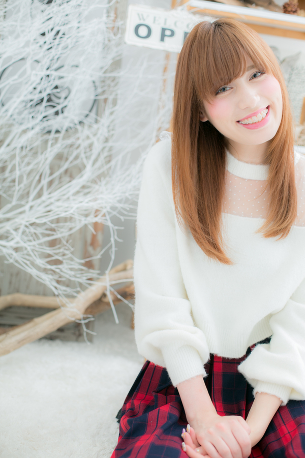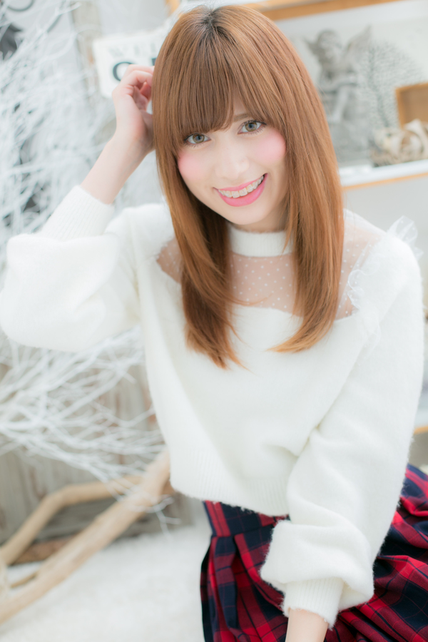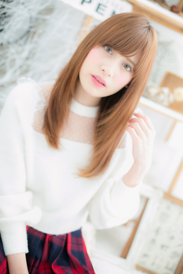 しっとりフォルムのストレートロングにハイトーンカラーでアクセントをつけました。目のラインぎりぎりのバングが目元の印象をUPさせます。