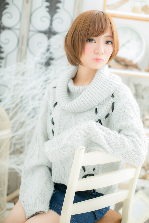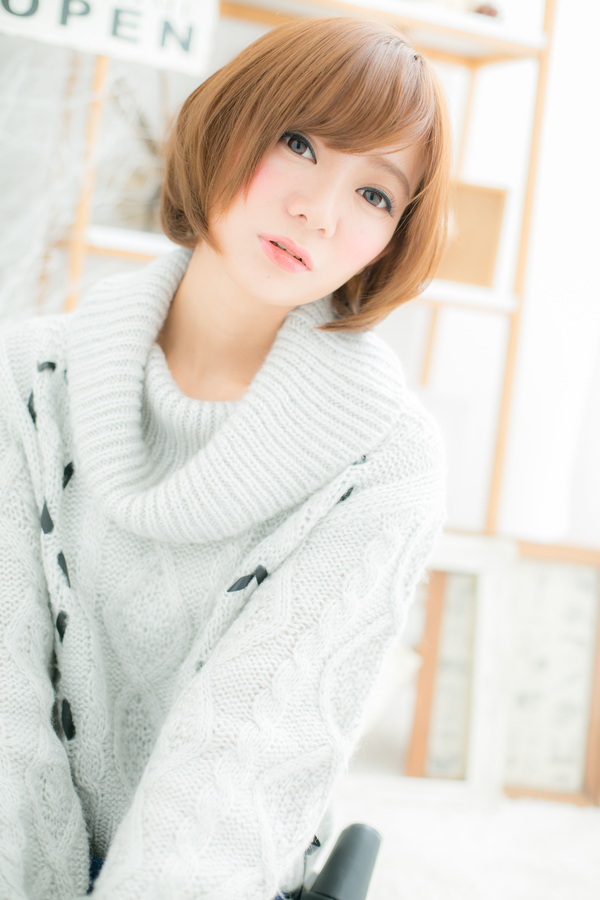 丸いシルエットがかわいいナチュラルボブスタイル。明るめのベージュカラーでカジュアルさもプラスしたエアリーな印象のボブスタイルです。