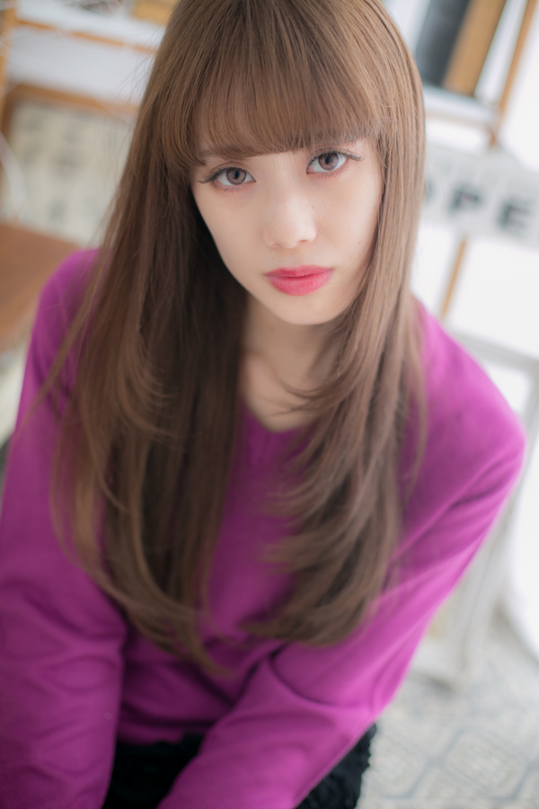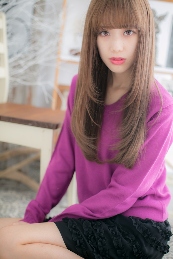 重たくなりがちなストレートロングを、シャギーとパッと目を引くベージュカラーで華やかに。憧れのストレートロングはツヤがポイントなので縮毛矯正をかけていれば簡単にキープできます♪