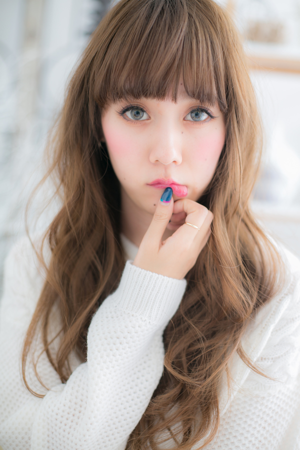 ワックスをもみこんで手グシでブロー。毛先はさくようにほぐしながら整えて。前髪は内巻きにブローして、眉をチラ見せさせてもカワイイ。