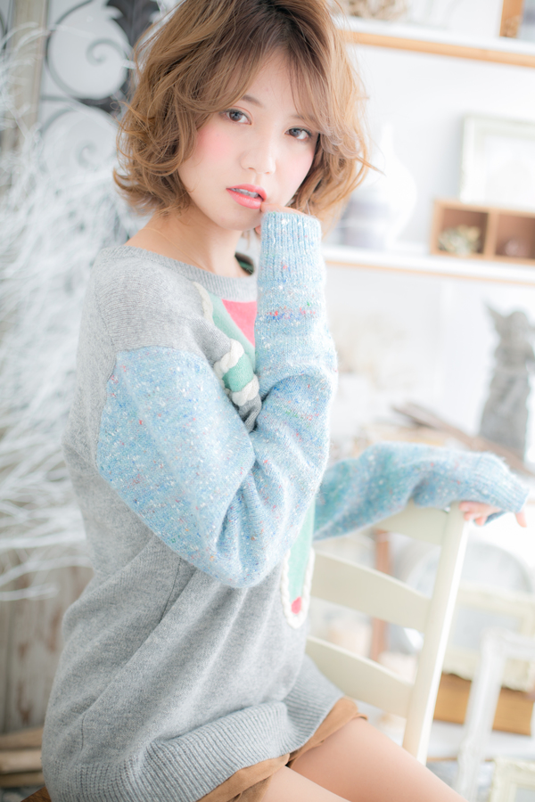 耳上からリップラインにかけてふわりと揺れる、浮遊感たっぷりのカジュアルな柔らかウェーブがポイント。グラデカラーや立体カラー等もオススメです。
