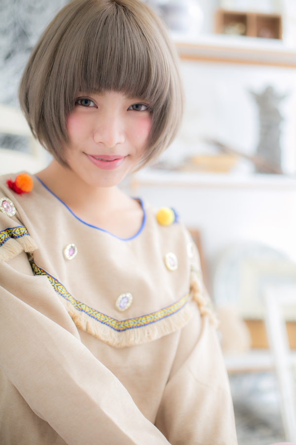 透明感あるサラツヤマッシュベースのボブスタイル。ハイトーンカラーでナチュラルより一歩踏みこんだインパクトを楽しんで。ピュアで個性の光るオシャレガーリースタイルです♪
